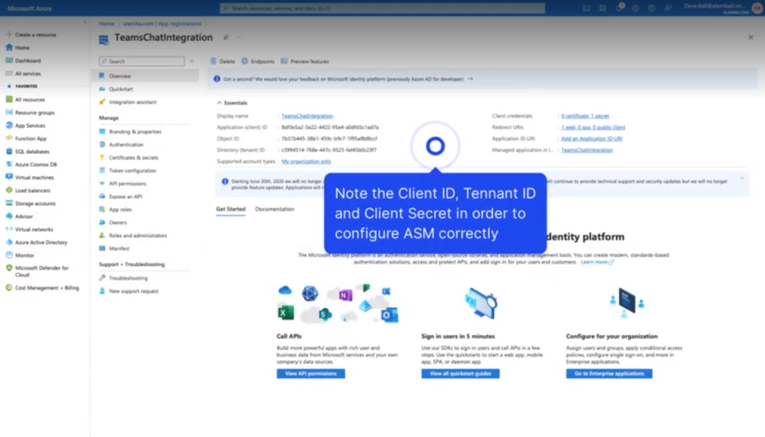 Note the Client ID, Tennant Id and Client secret as you will need these values later in the ASM configuration.