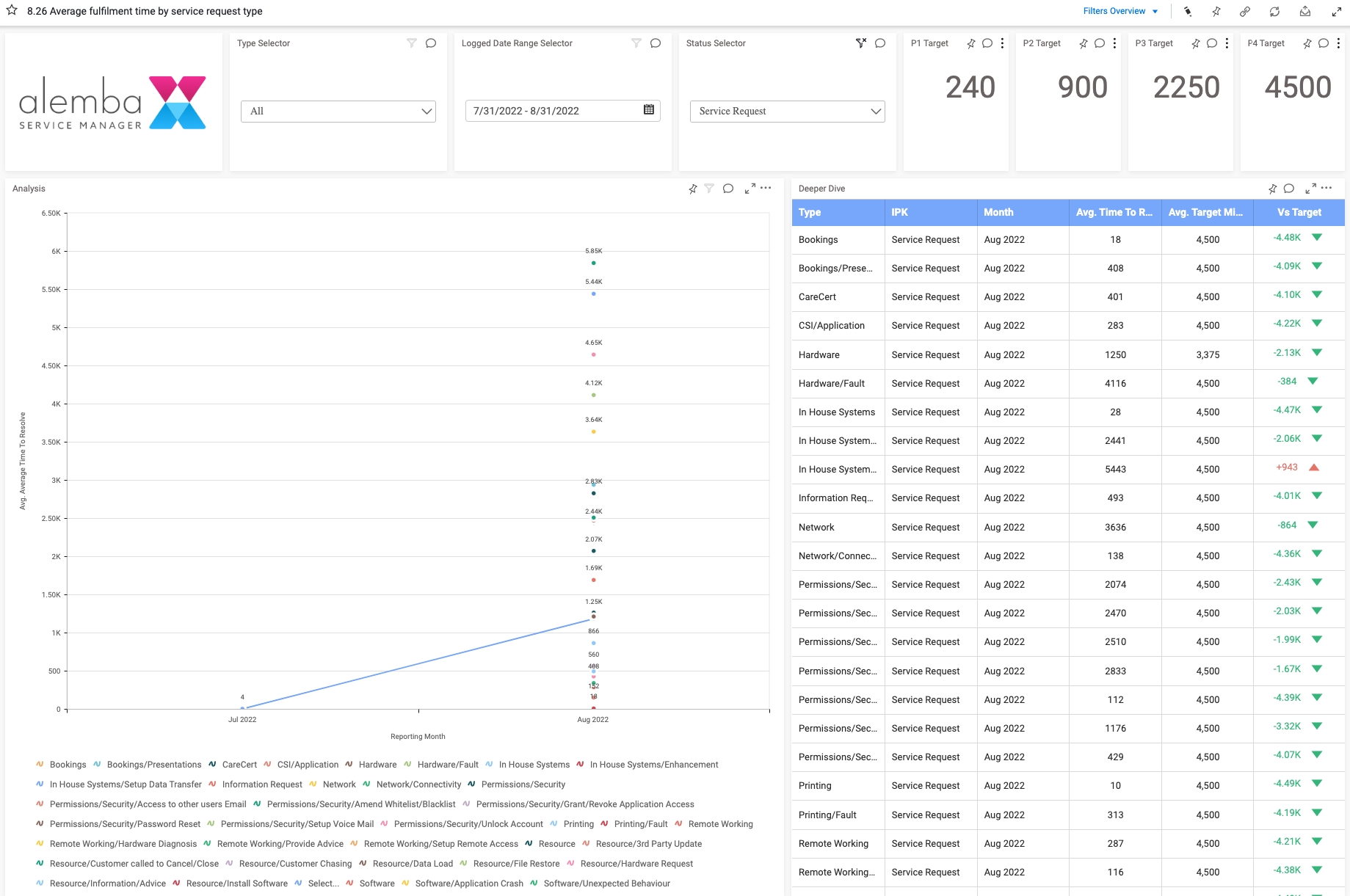 Average fulfilment time by service request type