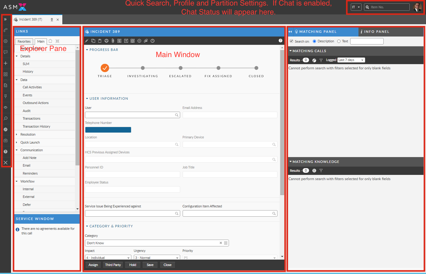 There are certain elements of the ASM Core Window that are the same or similar throughout the application.