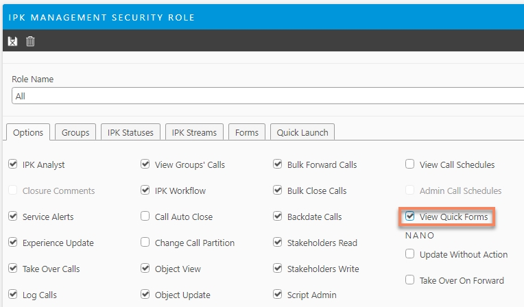 Enable “View Quick Forms” permission in the relevant IPK Security Role