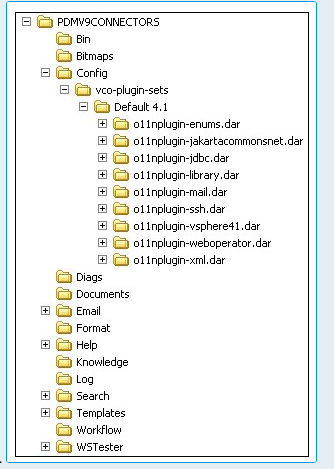 This example illustrates the folder structure once the vRO connector installation is completed (ASM System is PDMV9CONNECTORS).
