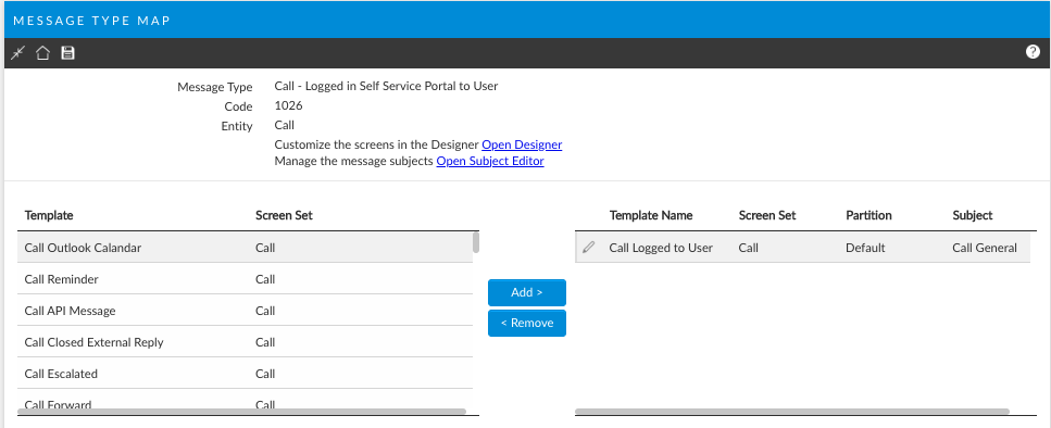 2. Access message type mapping for 1026 - Call - Logged in Self Service Portal to User
