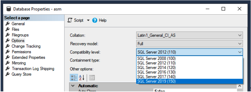 Go to Options and click on the Compatibility Level: