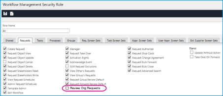 Workflow Management Security Role: Review Org Requests - ON.