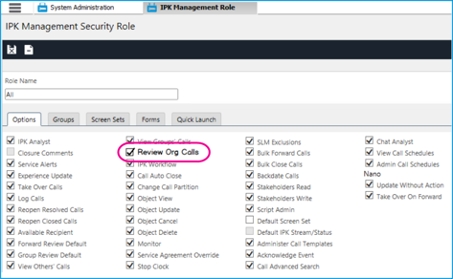 IPK Management Security Role: Review Org Calls - ON.