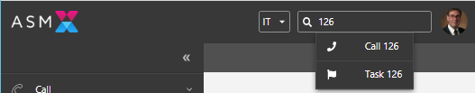 In addition to the functions in the menu, to the far right of the ribbon you will see a quick search/global search box. You can use it to search for calls, requests, tasks, knowledge entries, or service orders.