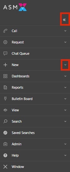 Example: Knowledge Search and New Call initiation are pinned. When collapsed, nothing else appears in the menu, but when expanded, all the menu items will appear with Knowledge Search and New Call floated to the top (see below).