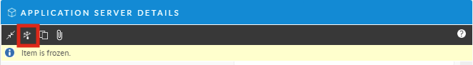 5\.  The details are redisplayed, with a banner across the top declaring that the item is frozen. The fields within the **Details** window are grayed out and disabled and the  button is replaced with an **Unfreeze** button, allowing you to unfreeze the item.