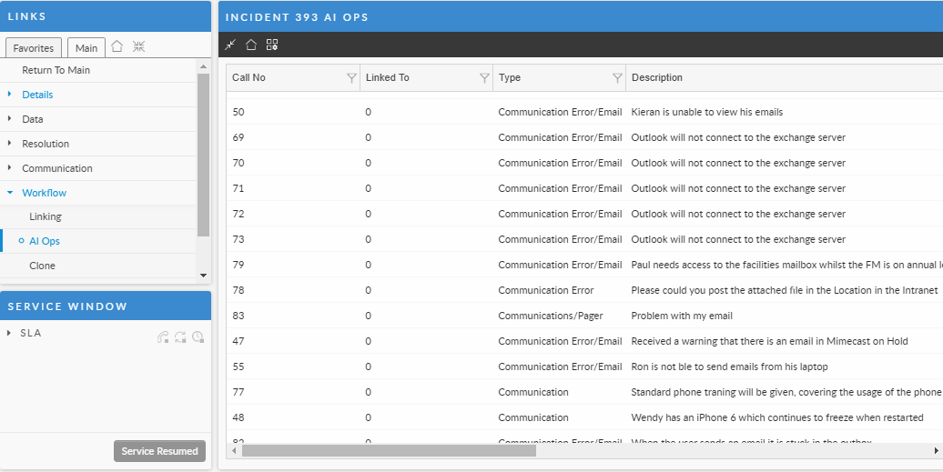 When you are viewing the list of tickets (calls) that the AI Ops rule found, it is important to understand they are not yet linked, merely associated as triggers that fulfill the parmaters of the AI ops rule. You still need to review these triggers and then link the calls that are actually relevant.