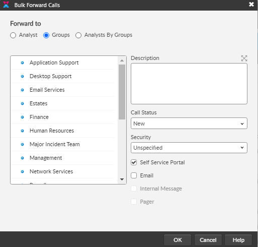 When you have selected the analyst or group you want to receive the call, select OK to forward the call and close this window. This is the same as double-clicking on the name.