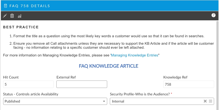 Out of the box, ASMs knowledge Submission screens are preconfigured. However, more often than not, analysts are confused as to what information to put and where to put the information. This increases the workload for the Knowledge Management Team and since the whole point is to capture tacit knowledge and make it explicit - it is wise to make that as easy as possible for your authors.