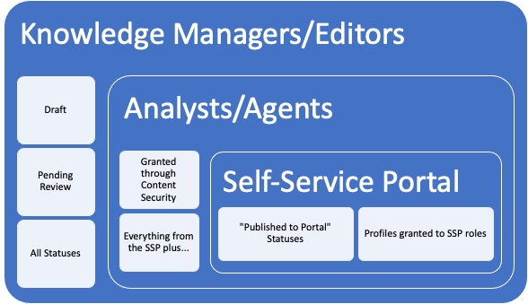 Most organizations have two audiences. Internal staff and Self Service Portal Users, or "Public" users. In reality you have many layers in each of these two main audiences, but essentially you will have internal-only knowledge and knowledge that is appropriate for all audiences.