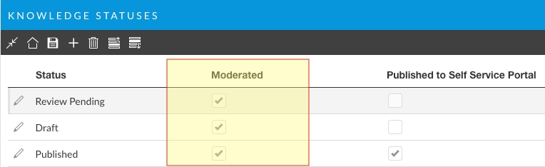 If Moderation is enabled, only Article Statuses (Draft, In Review, Published, etc...) that are marked as moderated will be visible on the Portal or in Core and NANO.