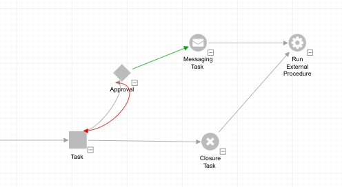 You can make any task recursive, meaning it will reopen a task that is already closed. Most often recursive tasks are approvals and Manage CMDB tasks. For example, you may have an approval for a change that if rejected, reopens the Change Review Task in order to provide an opportunity for the submitter to make changes and resubmit for approval once again. You can make a Manage CMDB task recursive so that if it fails, its preceding task, or a new task will open allowing manual intervention.