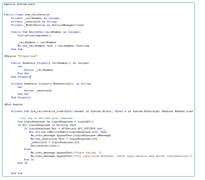 The sample code below is available as part of a demonstration package to use the Classic API. Contact Alemba® on how to receive this sample code.