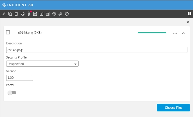 The Attach Object to <Entity> window appears. From here, you can click Choose Files to add files