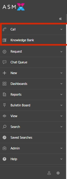 Example: Knowledge Search and New Call initiation are pinned. When collapsed, nothing else appears in the menu, but when expanded, all the menu items will appear with Knowledge Search and New Call floated to the top (see below).