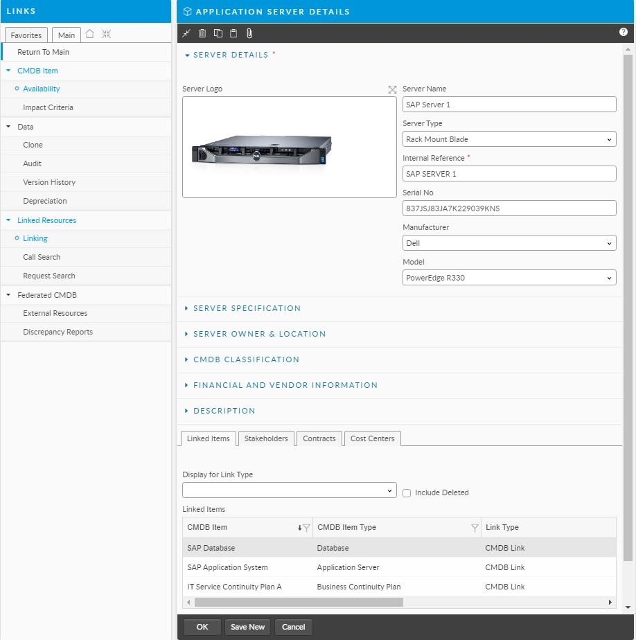 Certain details are standard for most CMDB Items. Complete them as follows. You may need to expand some of the sections by clicking on the title.