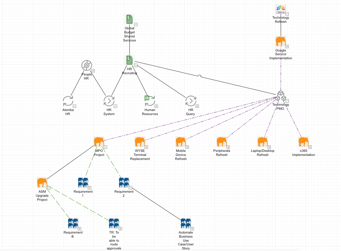 You can link intangible entities too, such as projects and requirements and initiatives, as pictured below.