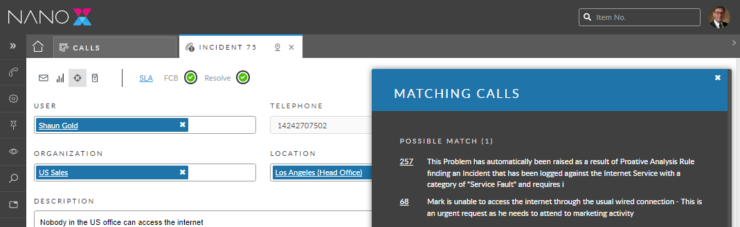 Use the Matching Knowledge panel and Matching Calls panel to see knowledge articles and calls similar to the current call that may contain solutions or valuable information.