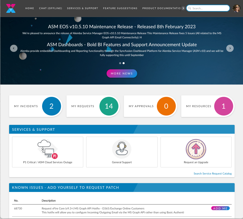 The Self Service Portal is highly configurable, and your system administrator can change the look and branding of the portal, as well as choose the columns that appear in tables such as My Incidents and Major Incidents.