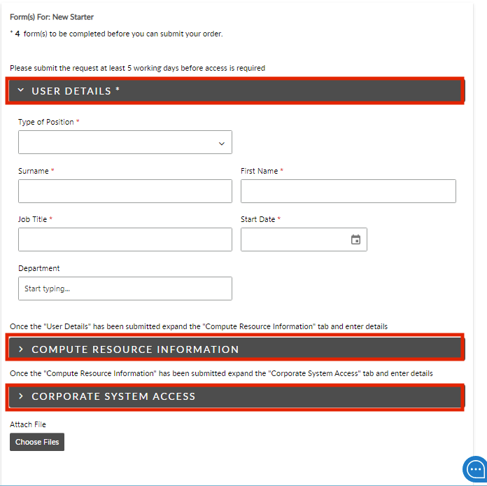 ASM is able to bundle several requests. For example, a New Starter request may have many moving parts and forms to complete before you can submit the order. When this is the case, the top of the screen will display the number of forms left to complete,