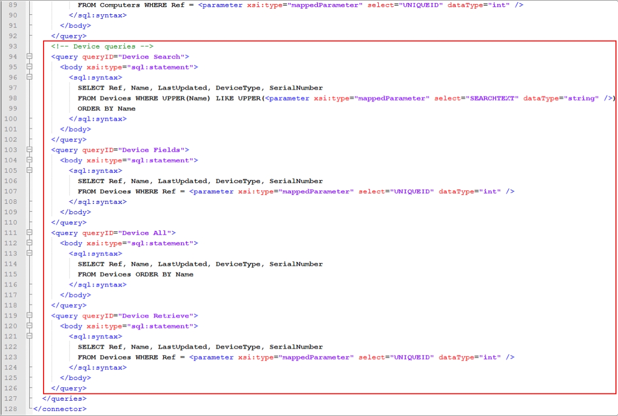 For this tutorial the query names are “Device Search”, “Device All”, and “Device Retrieve”.