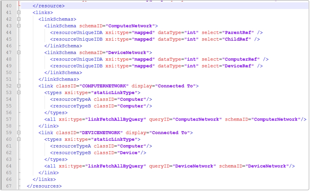 Identify the line pair that contain </resource> and </resources> respectively. Between those lines add code to the icnf file as shown in the image below, from line 41 to 66.
