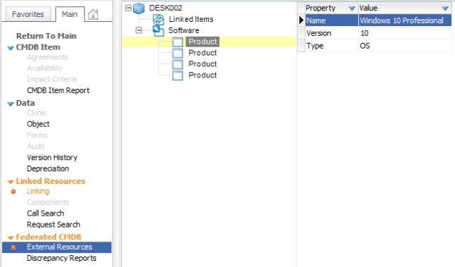 In ASM Core, data exposed by the view appears in the External Resources window of imported CMDB Items.