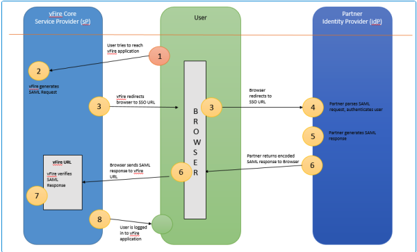 This is sent to the Identity Provider via the User/Analyst’s browser, with the SSO URL.