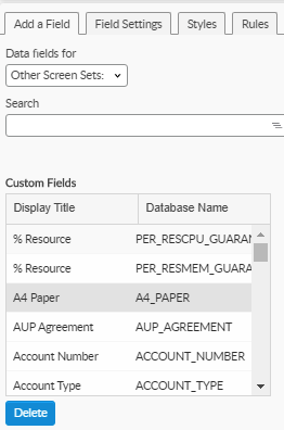 `If you are deleting a custom field associated with another screen set, the field is removed from the current screen only. It will still appear on other screens in which it has been added, however, it will no longer be available in the list of available fields.`&#x20;
