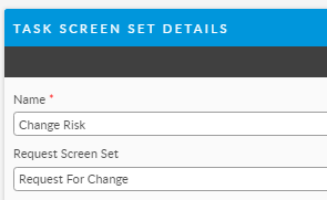 When creating task and Approval screen sets, be sure to list the corresponding Request screen set's ‘Parent” is listed so that you are able to pass data between the screen sets easily. See below.