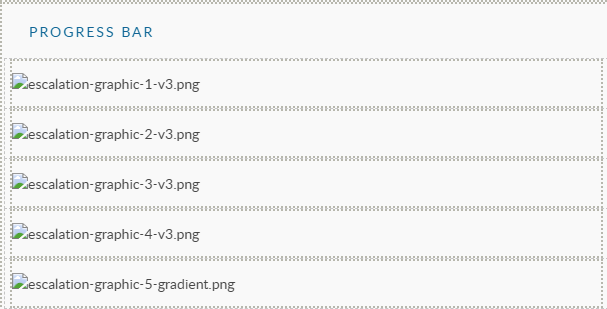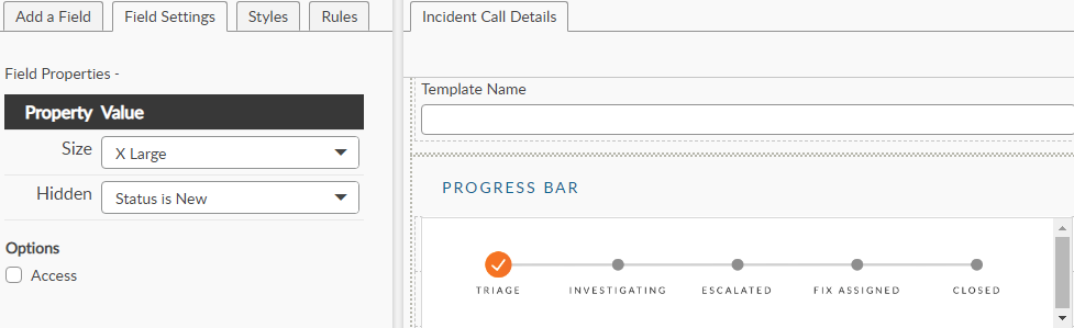 > Example: A progress indicator may cover several statuses: Triage, Investigating, Escalated, Fix Assigned, and Closed.  You can add a progressive graphic representing each of these states, in this example 5 different images stacked on top of one another.  Finally, setup rules to show or hide each graphic based on the status of the call/ticket. &#x20;