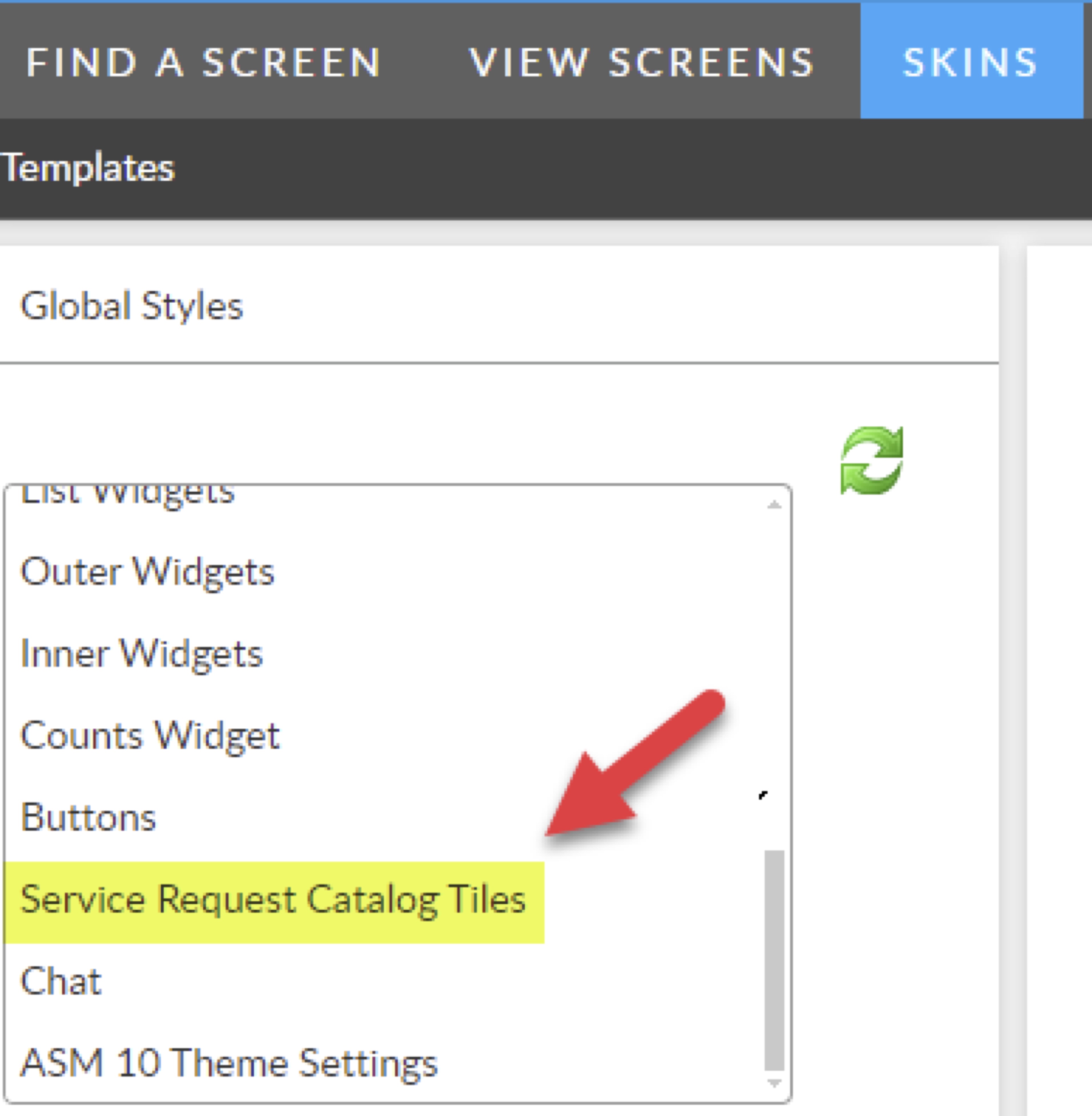 3. Scroll down the menu on left side to **Service Request Catalog Tiles** and select