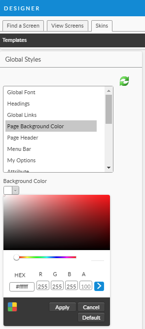 8. Select **Save** at the bottom of the main pane to apply the changes, or **Restore Default** to revert to the original skin design. Type the change reasons if prompted to do so.