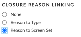 ## Enabling Closure Reason to Screen Set Linking