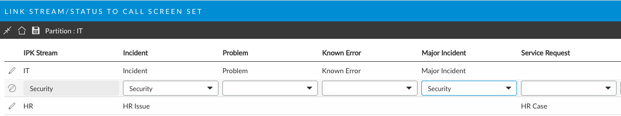 For example, if you have a created a custom screen set for logging Security Incidents (with fields specific to Security issues), you can link this screen set to an IPK Stream, Security, and by extension then, all IPK statuses that are linked to the Stream "Security".  When an Analyst logs a Security Incident, the Details window associated with the Security Incident Screen set is used.