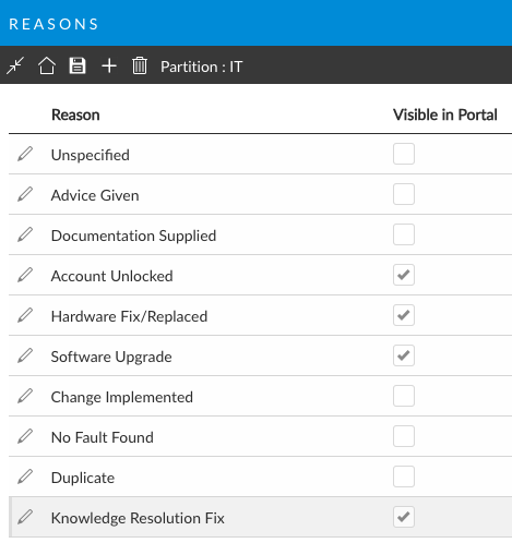 6. If you want the reason visible in the portal, tick the **Visible in Portal** checkbox.