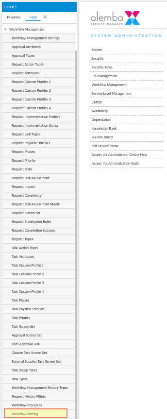 You can export an existing workflow. To export a workflow, open the Workflow Porting menu in System Administration.