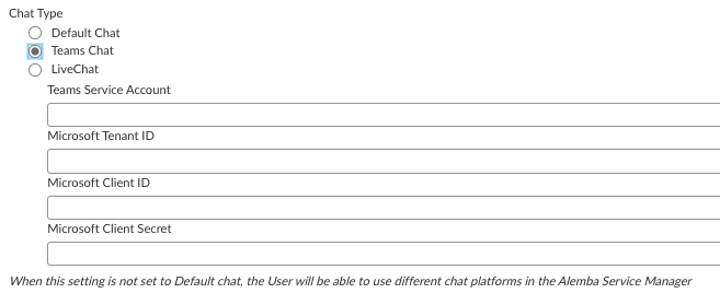 2. Configure Chat: Change the Chat Type to Teams in **System Administration>Preview Settings >Settings**&#x20;