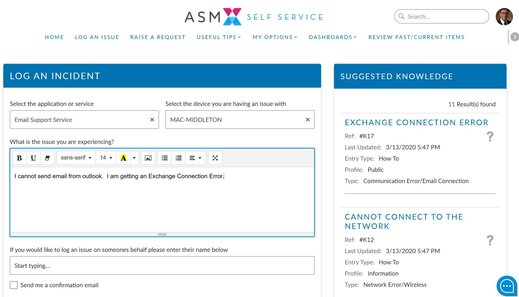Suggested Knowledge displays knowledge articles that match data entered into the submission form and allows users to resolve their own calls.