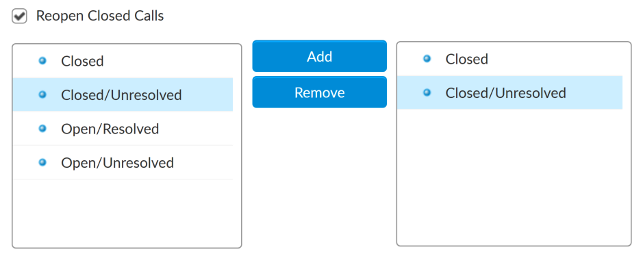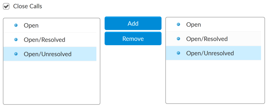 For example, you may wish to only allow customers to close calls that are Open/Unresolved, but not those that are Open/Resolved, or simply Open.