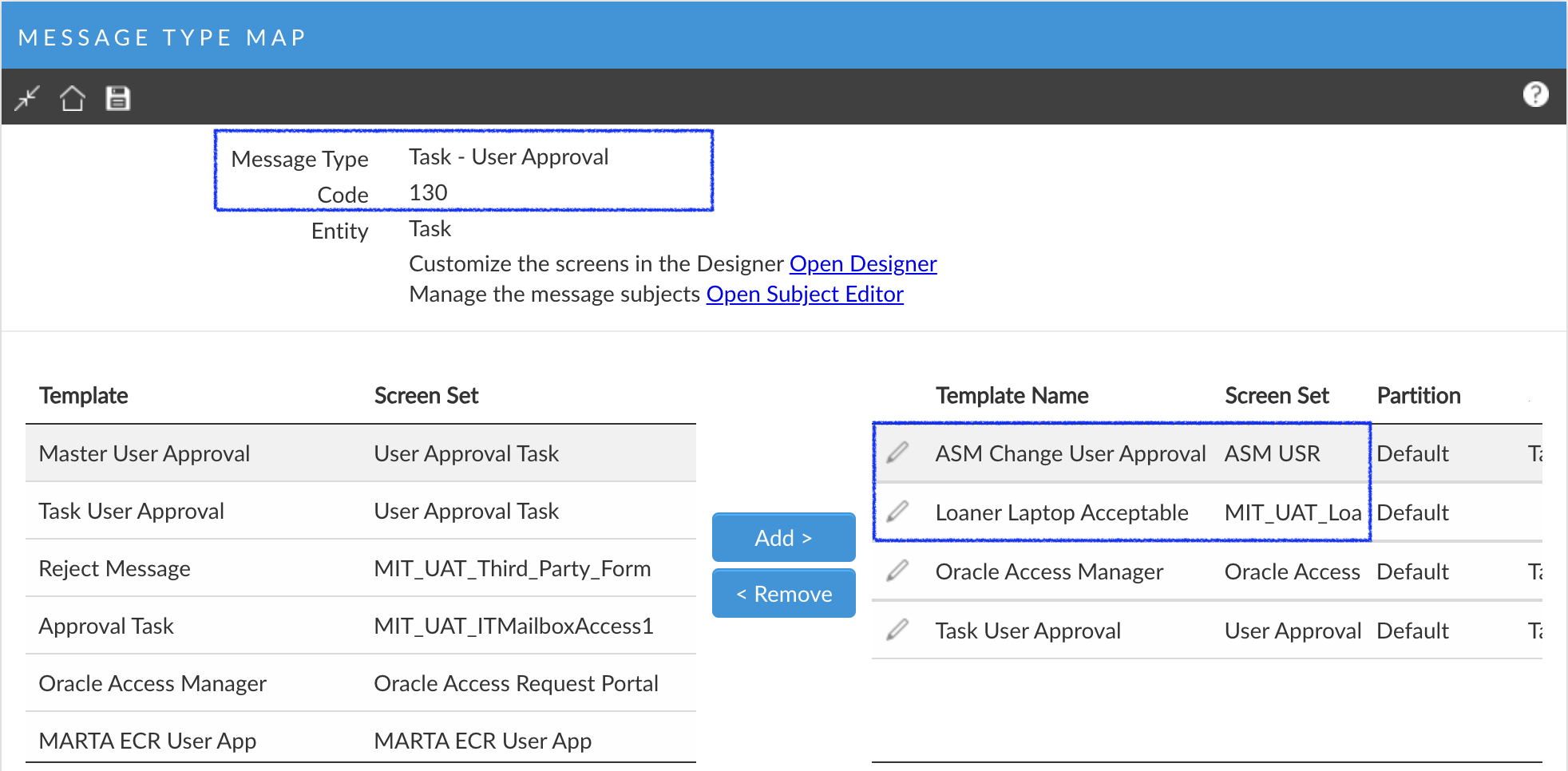 * Ensure the message template is mapped **System Admin > Message Types > Message type** **130: Task - User Approval**