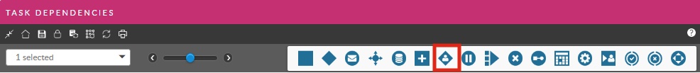 2. Select the **Update Dependencies** explorer option on the **Request Details** window, or the  button from the toolbar. The **Task Dependencies** window appears with icons for task entity types displayed below the toolbar.