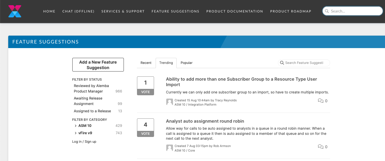 To see the Alemba Product Roadmap for future release schedule and new feature, please see: