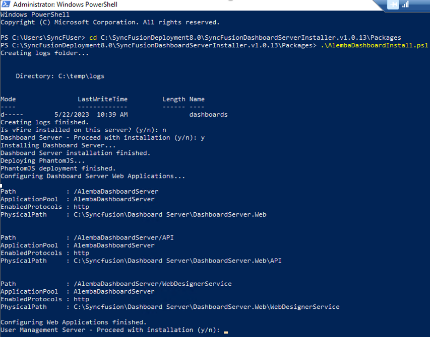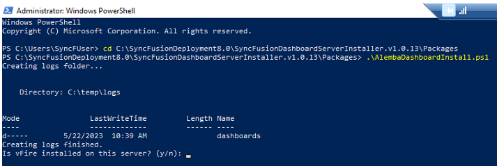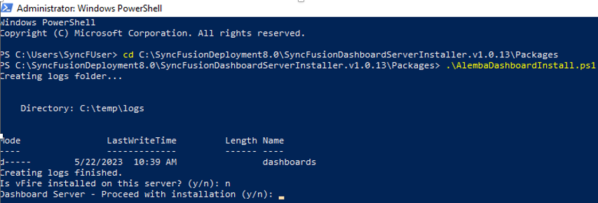 Cd C:\SyncFusiondeploymentX.X\SyncFusionDashboardServerInstaller.v1.0.13\Packages