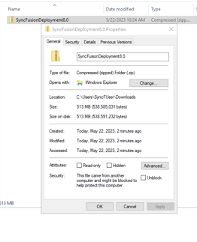 3. **Right-click** on the *<mark style="color:red;">**SyncFusionDeploymentxxx.zip**</mark>* package and **click** **Properties**.