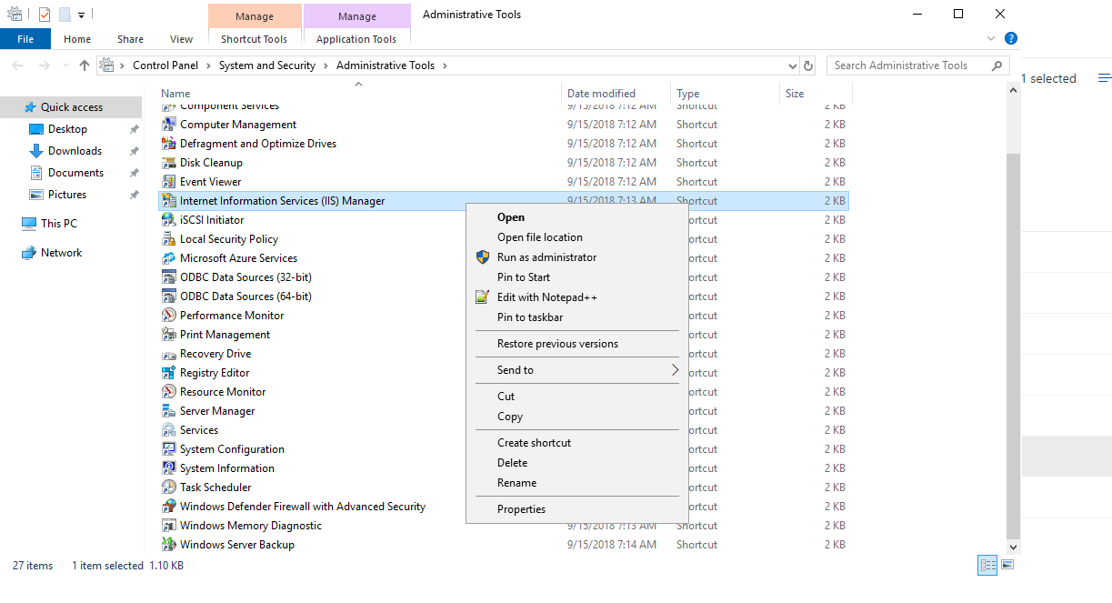 2. Right click Internet Information Services (IIS) Manager