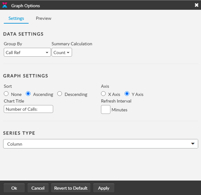 You can view calls, requests, and tasks in a graphical format from their corresponding Search window.