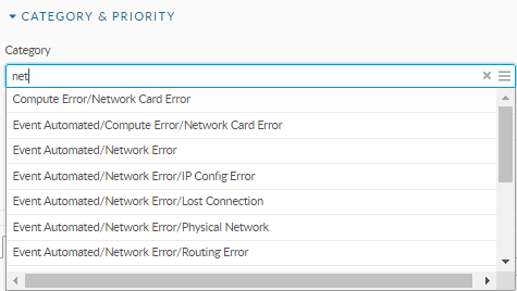 You can complete a number of fields using the search function. In any field with a magnifying glass in it, simply start typing and the system will dynamically match the data. If configured for example, you can start typing a user ID in the User field and the friendly name will appear, or the serial number in the CI field and the correct CI will appear.